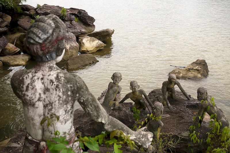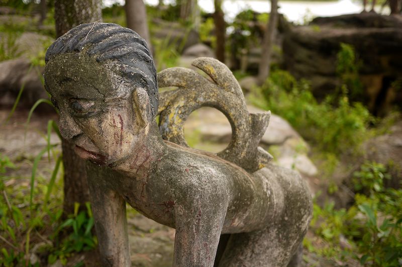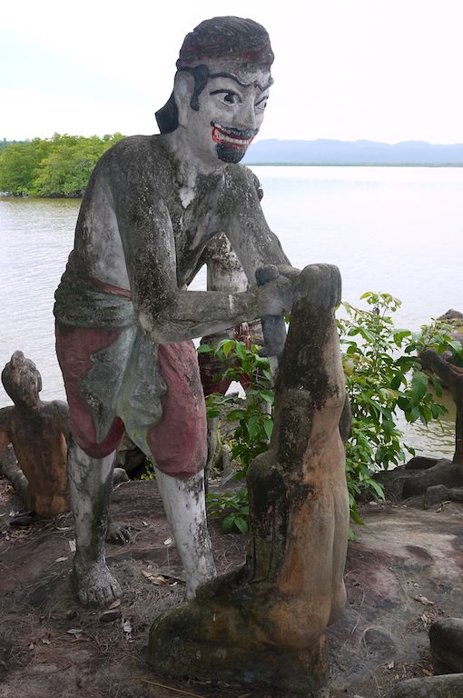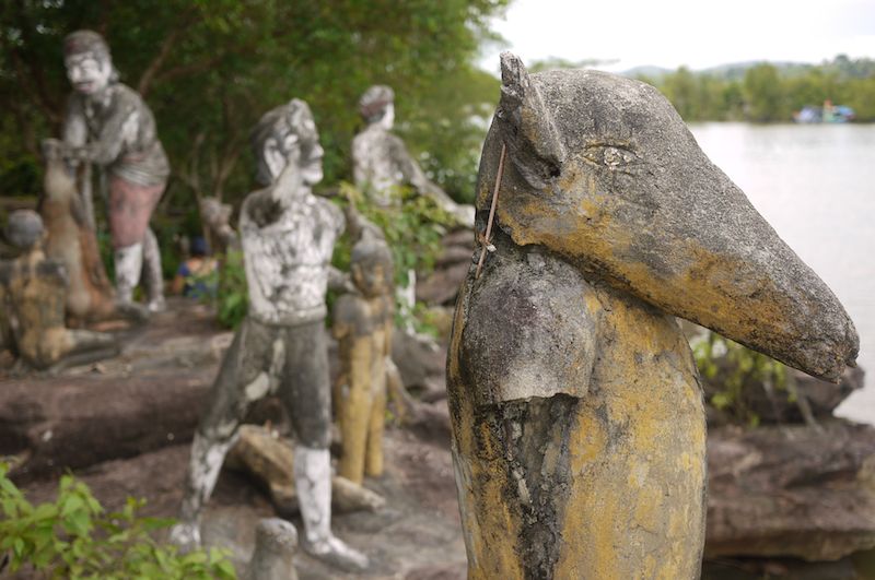 In the town of Koh Kong, near the border with Thailand, there’s a Buddhist spiritual retreat with a bizarre collection of sculptures by its riverfront.