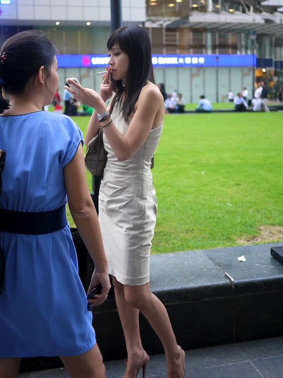 It’s also no handicap that the women had, in great numbers, slim bodies on which anything looks good. The financial district, in the heart of the city, is where men and women triumph in the looks department.