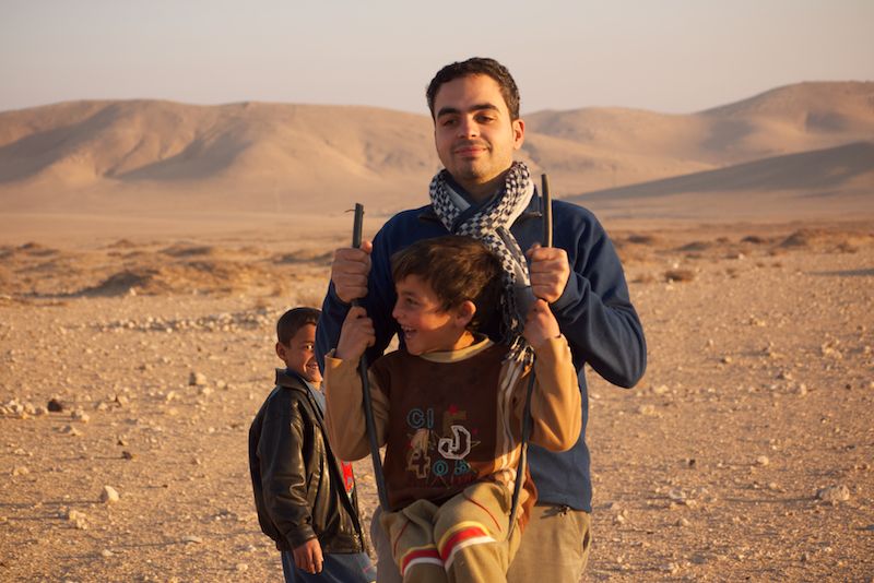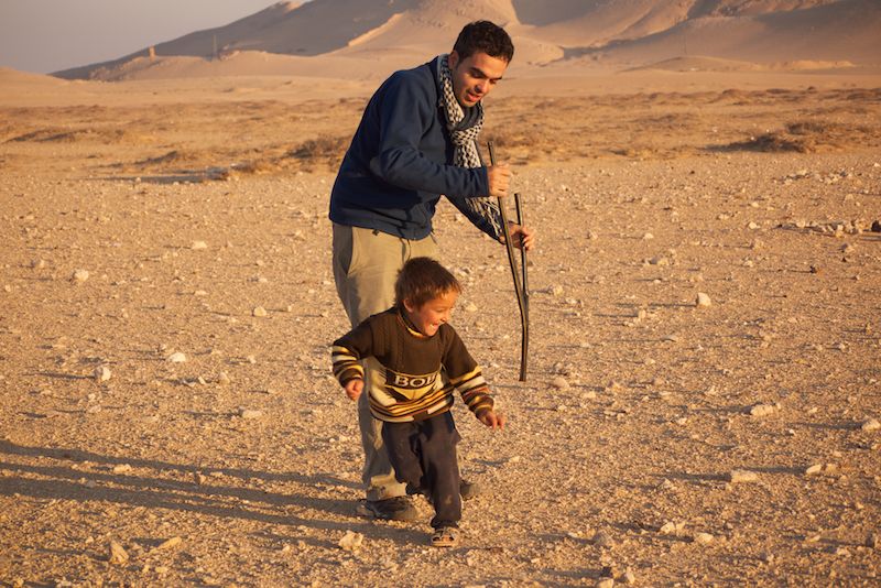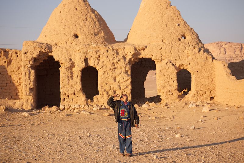 A few hundred meters from their tent are the remains of an ancient Bedouin home made of mud. The boys led us there while kicking the ball back and forth.